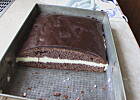Ciacho zrobiłam i jest dobre, ale nastepnym razem zrobię z podwójnej porcji masy. Na zdjęciu na 100% jest z podwójnej. Albo jakieś niskie to ciacho jest na zdjęciu bo u mnie wyszła zupełnie inna proporcja: duuuużo ciacha, a masy tylko odrobinka.