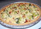 8. Na podpieczone ciasto dodajemy najpierw brokuła, porem boczek z cebulą i całość zalewamy sosem beszamelowym. Całość pieczemy ok 30 minut. Podajemy na gorąco.