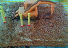 Zostawiamy to na jakąś godzinę, aby dobrze zastygło (najlepiej w lodówce), póżniej, trzeba je przekroić gdześ w 1/3 pionowo (poprostu odcinamy głowę). Tę mniejszą część okładamy marcepanem zabarwionym na czarno, póżniej przyklejamy oczy.