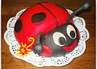 pozostałe 2/3 ciasta okładamy marcepanem zabarwionym na czerwono, później doklejamy kropki. Składamy ciastoi, dodajemy czułki (ja je kupuję w pasmanterii i część ktróa jest w cieście owijam folią spożywczą.) i mamy biedronkę, jak żywą.