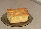 ugotować 2 budynie w 3 szklankach mleka, gorący wylać na jabłka. przykryć drugim plackiem rozwałkowanym na wielkość blaszki.