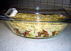 U mnie dziś zapiekanka na obiad (tak ustaliśmy z rodzną wczoraj) rano ugotowałam makaron, pokroiłam wszystkei składniki... i pomyslałam, że zajrzę co żarłoczki proponują no i oczywiście p. Basi przepis jako pierwszy mi wyskoczył haha i bardzo dobrze pomyslałam. Zajrzę do przepisu i co? ano okazuje się, że powinnam dogotować jeszcze ziemniaczki. No to dogotuję i spróbujemy jak smakuje. Dam znać później jak moja rodzinka oceniła. Tylko ja już do garnka w którym zwykle mieszkam składniki dodałam nieco poszatkowanego pora i smażonej kupnej cebulki