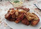 Na cebule wyłożyć podsmażone żeberka.