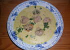 Pieczarki oczyszczamy i ścieramy na tarce, cebulę i czosnek drobno kroimy. Na patelni rozgrzewamy masło, po czym przesmażamy na nim cebule z czosnkiem, po chwili dodajemy pieczarki. W garnku gotujemy osoloną wode, do której dodajemy ziele angielskie, listek laurowy, kostki rosołowe oraz po zagotowaniu się mrożoną włoszczyzne, wraz posiekanymi łodygami selera, oraz podsmazone pieczarki z cebulą. Ser rozdrabniamy i dodajemy do zupy. W osobnym naczyniu przygotowywujemy pulpety, to znaczy mieszamy mięso mielone, z jajkiem, bułką tartą, posiekaną cebulą z czosnkiem, oraz przyprawą do mięsa i pieprzem. Pulpety wrzucamy do gotującej sie zupy, po czym podgotowujemy zupę około kwadransa. Na koniec doprawiamy do smaku papryką, curry, pieprzem. Posypujemy na talerzach posiekana natka pietruszki. Podawać z grzankami smażonymi na tej samej patelni, co pieczarki, na maśle
