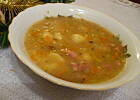 Gdy zupa sie gotuje, kroimy w kosteczkę cebulę, kiełbasę i boczek.