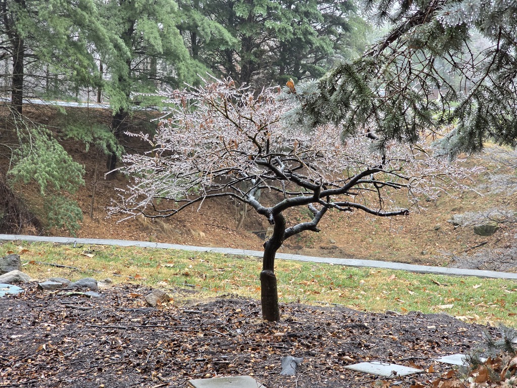 Wczoraj zamarzający deszcz na drzewach wyglądał pięknie.
