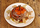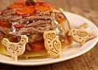 Smakosiu, tort żelatynowy dla pieseła to nic szczególnego - ugotowałam dwie nogi z kurczaka i szyję z indyka z marchewką. Zaraz wyjmę mięso i niech stygnie, potem oddzielę je od kości. Marchew wyłowię. Gorący wywar przecedzę i wymieszam z żelatyną. Gdy zacznie tężeć, zaleję nią pokrojone mięso i plastry marchewek oraz ugotowane na twardo jajka. Potem michę, w której wszystko zastygło na chwilę do wrzątku i ciach do góry nogami. Będzie psi tort jak malowany - mam nadzieję, że będzie Morelkowi smakowało :D