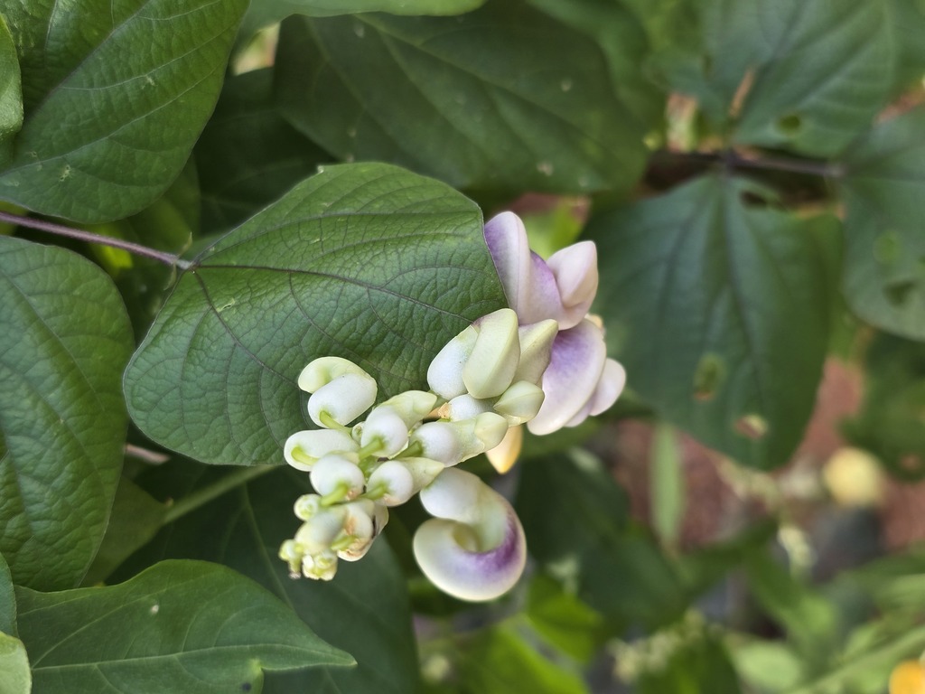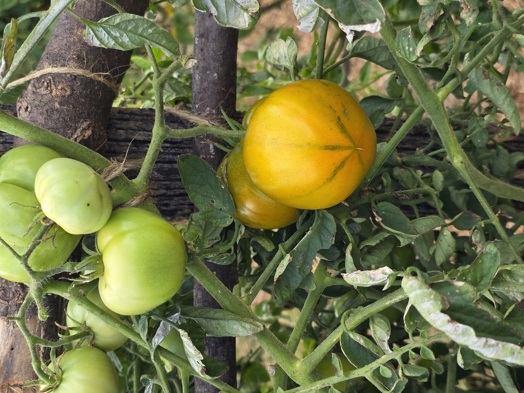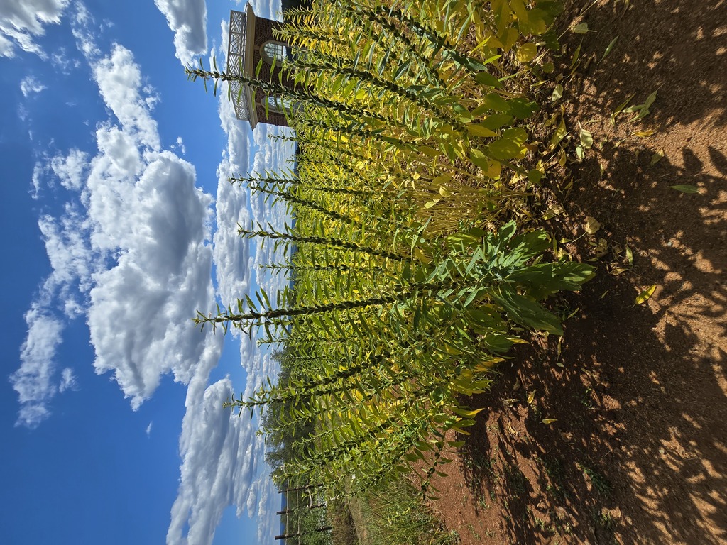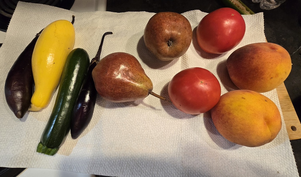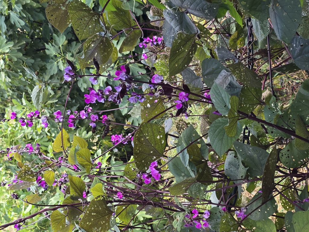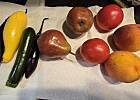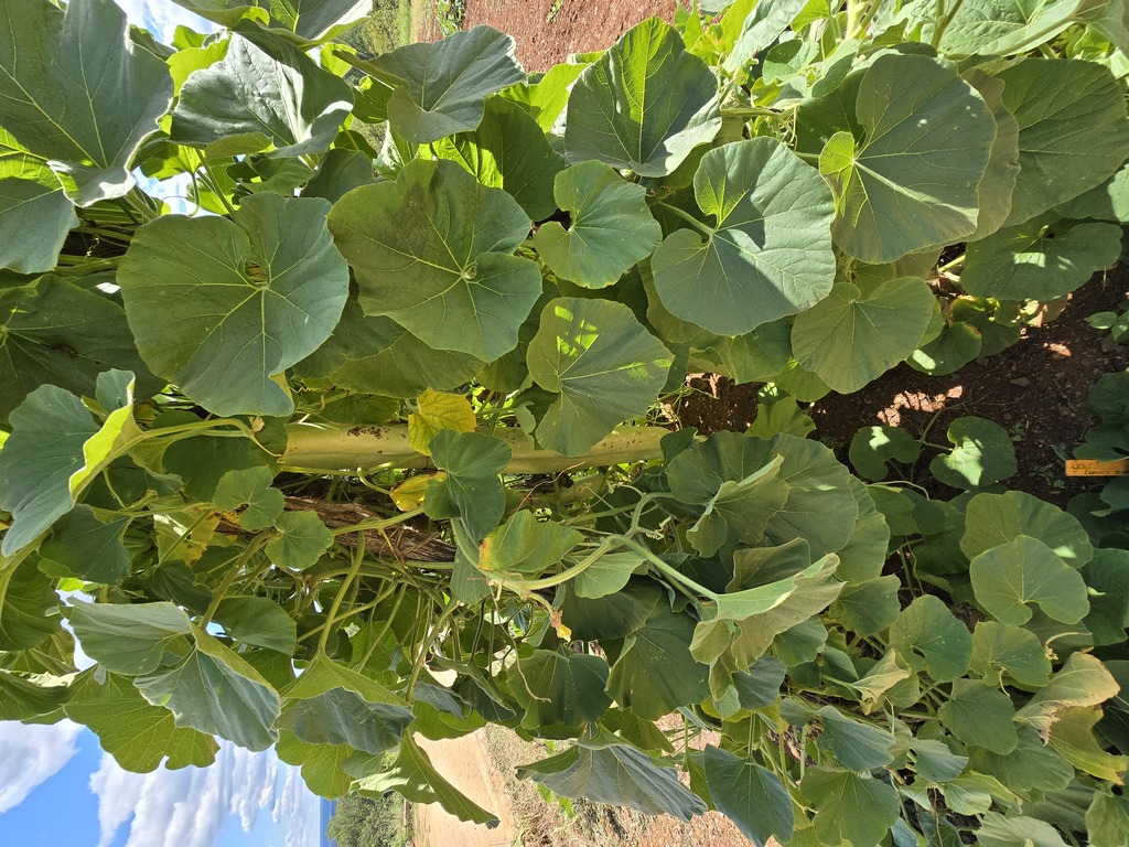 Uprawiał cukinie, długie jak węże, nie widziałam w życiu takich, gryke, sezam, kukurydzę, dynie, figi. Kilka roślin których nie znam, a nie mają tabliczki co to.