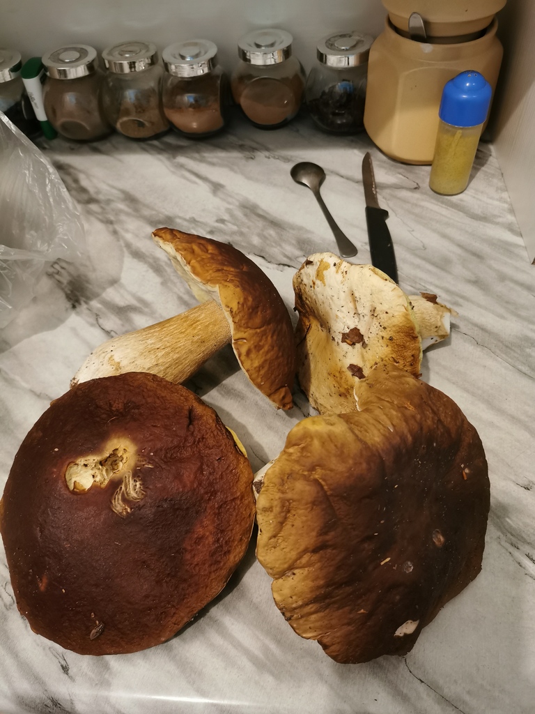 Z jedną ciocią wybraliśmy się na spacer do lasu, a tam przy okazji natknelismy się na piękne okazy prawdziwków. Mieliśmy więc pyszny obiad z grzybów, konkretnie sos.