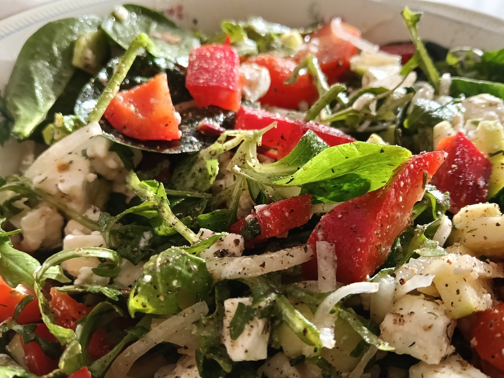 A planowałam zjeść pierogi. Nic to, będą na inny dzień, bo dziś mam ochotę na sałatkę grecką czyli micha warzyw z fetą