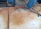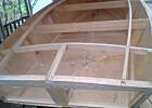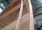 Witam po pracowitym dniu przy budowie łódki. Praktycznie biorąc w stanie surowym łódka gotowa. Muszę wyczyścić ją ze śladów kleju / taki specjalny do drewna, schnie w 20 min /, widać ślady na zdjęciach. Następnie pokryć wierzch łódki sklejką. Cały szkielet wierzchu jest zamontowany. Całość przeszlifować i szukać pomieszczenia do pokrycia specjalnym materiałem i położyć żywicę. Zakonserwować wewnątrz. Z całości została tylko skrzynka odpadów!