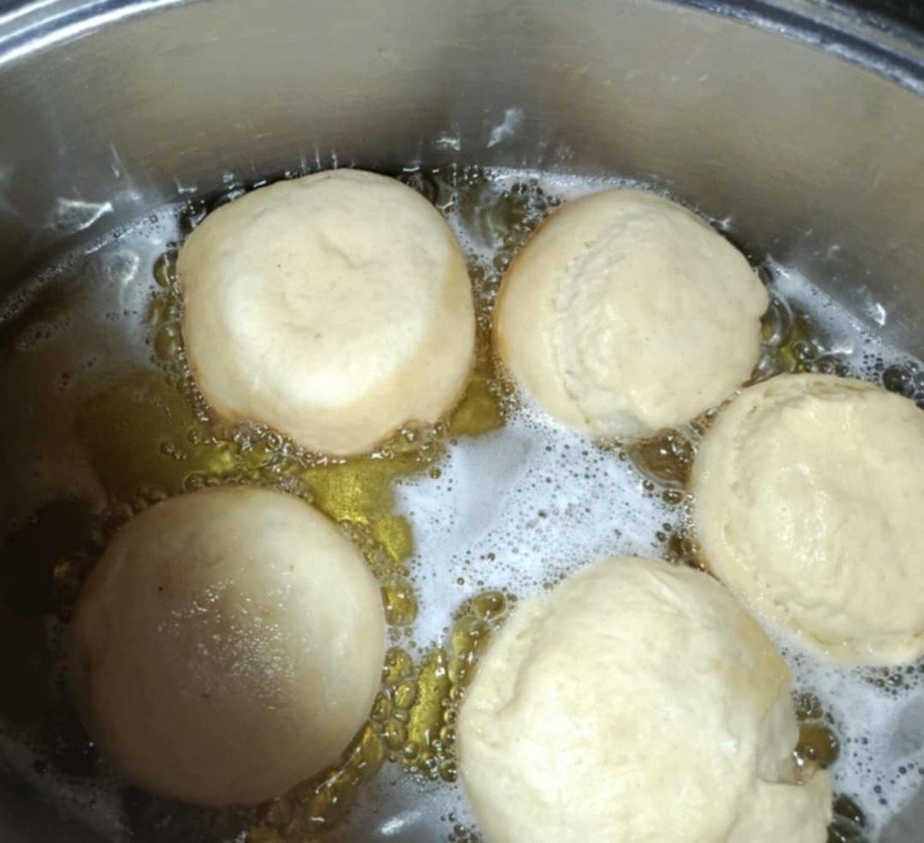 3. Smaż pączki na głębokim tłuszczu, aż będą złociste z każdej strony.