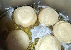 3. Smaż pączki na głębokim tłuszczu, aż będą złociste z każdej strony.