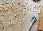 Radełkiem wycinam paski, wielkość zależy od naszych upodobań, faworki sporo rosną. Paski dzielę na mniejsze, pod skos, w każdym robię nacięcie i przeciągam ciasto .