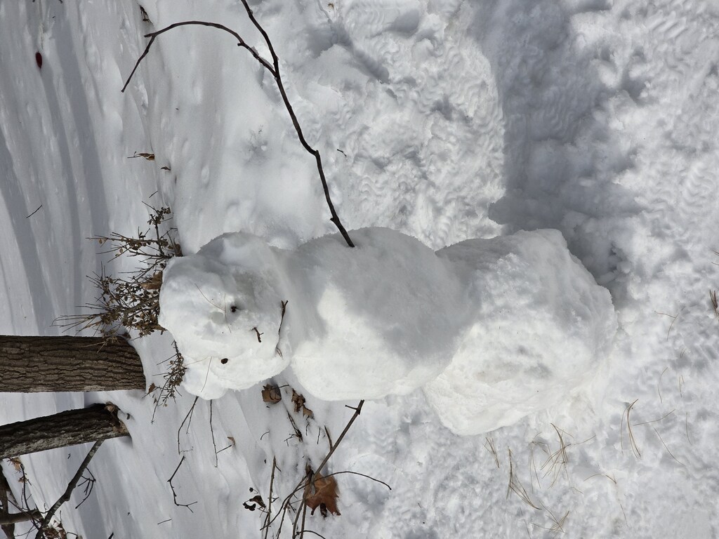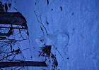 Wczoraj mu przyniosłam marchewkowego nosa, w nocy rogate towarzystwo zrobiło sobie bufet z niego, ślady kopytek dookoła bałwana były.