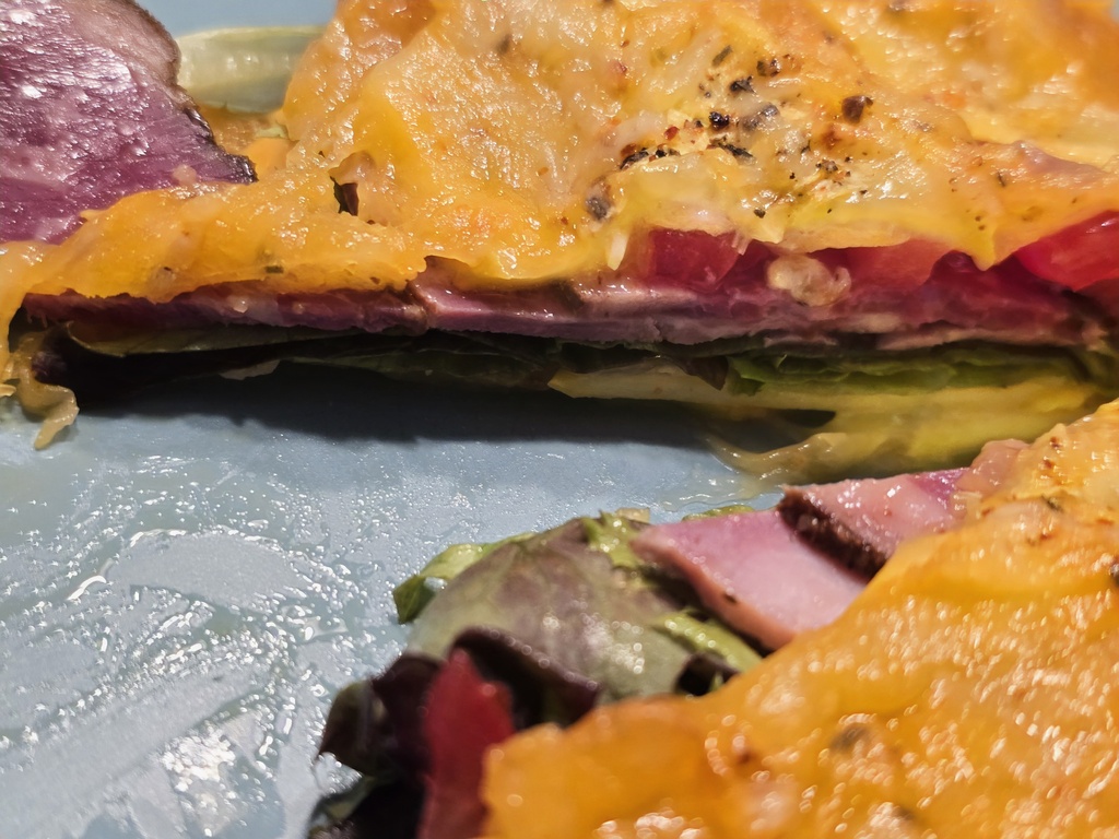 Zjadłam połowę, jako kanapkę, nożem i widelcem. Z drugiej połowy spróbuję zrobić wrapa. A może zjem tak samo.