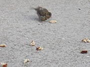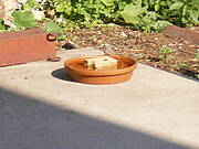 a tutaj Charlie postawil im podstawke spod doniczki na wode do picia, bo mamy fontanne na tarasie i niestety tam przychodzily pic i tam tez upodobaly sobie miejsce na zalatwianie innych potrzeb fizjologicznych :))) Niestety to ostatnie zdjecie nie jest wyrazne, bo cwirek tez stanal na brzegu podstawki nie po tej stronie co trzeba, ale zapewniam Was, ze ta szara plamka na oddalonym brzegu to wlasnie jeden z moich cwirkow. Dogadzam im jak moge i nawet te kawalki chleba polewam woda, bo jak sa za suche od slonca to jest im trudno jesc. W ubieglym roku mielismy takiego jednego, co jeszcze nie umial fruwac i sie chyba zagubil i chowal sie w nocy w naszych doniczkach balkonowych i przez 4 dni karmilismy go tak z odleglosci mniej niz 1m i wcale sie nie bal, az ktoregos dnia zniknal i juz wiecej sie nie pokazal.