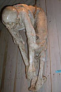 W tylnej części ściany znajduje się Relikwiarz z niedopalonymi szczątkami ludzkimi ze stosu całopalnego - miejsca, gdzie na przełomie lat 1944-1945 hitlerowcy palili ciała ofiar."