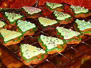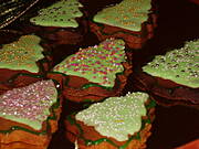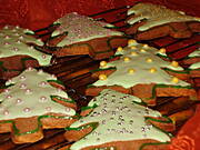 Choinki zostały przełożone masą marcepanową z dużą ilością amaretto a dzwony masą grysikową i powidłem.