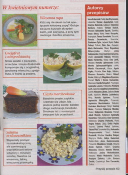Myśle, że redakcja pewnie nie miala nawet pojęcia, że do wydruku trafia kradziony przepis i zdjęcie, bo niby skąd ? Gdyby jakis złodziejaszek zamieścił na naszej stronie cos podobnego - skad wiedzielibysmy, że to nie jego (jej) ? Na ogół kierujemy sie tu przecież domniemaniem uczciwości i dobrej woli ...