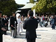 Slub w swiatyni shintoistycznej Meiji Jingu /Tokio/