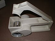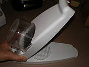 tarka do sera na baterie, kostki sera kladziemy w tym gornym otworze, dociskamy ta klapka i z otworu okraglego z boku wylatuje starty ser.