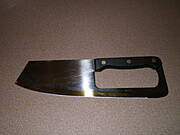 tasak-siekacz, przez umiejscowienie uchwytu z gory odciaza nadgarstek, ponoc mial sluzyc do ziol, ale ja go uzywam tez do innych rzeczy, zwlaszcza jak jest wiecej siekania.