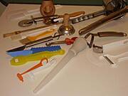 Natomiast to białe po prawej - to skrobaczka do julienne (złamany kawałek plastiku), a wyżej skrobaczka do ryb (też biała) a jeszcze wyżej skrobaczka do warzyw (metalowa)....:)))
