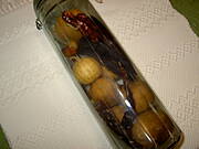 tineczka - piękne zbiory. Też suszę papryczki, ale pojedyncze sztuki, takiej ilości nie zużyłabym chyba i przez pięć lat. Po ususzeniu tnę na mniej więcej centymetrowe kawałki i trzymam w słoiczku. Jak dla mnie taki kawałeczek zupełnie wystarcza (a dodaję np do rosołu czy krupniku). Zaciekawił mnie ten słoiczek na zdjęciu. Czy owoce takie jak pomarańcze lub banany wyschną w całości i nie spleśnieją? no i czy taki zapas zamknięty w słoiczku tylko do dekoracji i wąchania czy też suszone cytrusy do czegoś zużywasz?