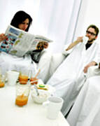 Biały jest taki bez wyrazu - może to moje osobiste odczucie, ale nie cierpię białego, wszelkie "imprezy", gdy potrzebny jest obowiązkowy strój galowy są dla mnie horrorem i męką. Ja stawiałabym na kolory - żywe, ale nie do przesady jaskrawe - zielony, pomarańczowy, żółty, różowy. I lazurowy błękit. To kojarzy się z ciepłem, rozleniwieniem, błogością. a biały to nadal zima - wręcz polarna, gdzie ta biel jest jeszcze nie skażona brudem cywilizacji.