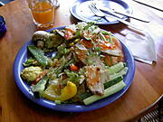 Ja długie lata (w zasadzie całe życie) nie cierpiałam sałaty - podawana po polsku, z dużą iloscia śmietany (której nie znoszę w postaci śmietany), odciśnięta z nadmiaru soku po posoleniu, zielona miazga smakująca niczym. jadłam jak musiałam, dobrowolnie nie robiłam. Kilka lat temu podano michę sałat z kilkoma plasterkami pomidorów, ogórka oraz 4 kawałeczkami mięsa. Przyzwyczajona do braku kaloryczności zielonej miazgi była najpier przerażona, że nas głodzą a potem miło zaskoczona, że w połowie jestem już najedzona.