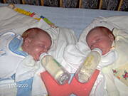 Tak to ja ale widzisz kiedy zdjęcie zrobione. Dodam, że tam gdzie trzymam butelki to było pierwsze karmienie w domu po powrocie ze szpitala a butelki miały pojemność 60 ml. Na tym z gąbkami już 250 ml.Jeżeli chodzi o gąbki to jakoś trzeba sobie radzić gdy potrzeba wolnej ręki na coś np by podnieść jedno dziecko jak drugie jeszcze pije.