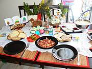 U nas pierwsze "samodzielne" Święta... więc kulawo i wybitnie "po naszemu". Święconka w koszyczku, część wyląduje w żurku. Biała kiełbasa- chłopisko sobie zażyczyło. Sałatkę gyros i makaron z łososiem i szpinakiem dziecie nr1, dziecie nr2- orzechy?!? ja wszelakie sery. Poza tym jajka, wędlina, pasztet warzywa i owoce. Ciasto jedno nie wiem jakie dzieci ze mną zrobiły... czekoladowo-malinowo-cytrynowy torcik, sernik i jabłecznik. Bez szału i nadmiaru jedzenia. Mam nadzieję , że będzie dobrze. :)