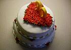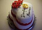 Nie smaruje masy wodą.Czerwoną masę na tym torcie pomalowałam złotym barwnikiem w proszku.Barwnika niczym nie rozcieńczam,maluję takim sypkim,wtedy można uzyskać najlepszy efekt.