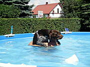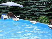 Skuter : temu to dobrze, ale w oczku, gdzie kilka razy dziennie wskakuje dla ochłody. Basen to nie jego żywioł