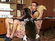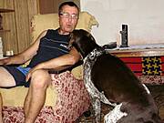 Moje piesy takiej zwykłej butzy to wcale się nie boją. Ale jak już nadejdzie taka wielka nawałnica, to Kaktus otwiera drzwi od mieszkania (ich legowiska są w pomieszczeniach piwnicznych, obok kotłowni) i wprowadza Skutera i sam też wchodzi. Skuter najchętniej to wlazłby wtedy pod pierzynę do teściowej, chociaż jej nie lubi. Kaktus jest spokojniejszy, ale widać że takie bardzo głośne wyładowania już teraz zaczynają robić na nim wrażenie.