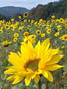 Ja na poprawę nastrojów przyniosłam zdjęcie z pola słoneczników mojej sąsiadki w górach, zrobione tydzień temu. Pogoda była wtedy cudowna i nie tak łatwo było cyknąć kwiatka, bo bujał się na wiaterku. Szkoda tylko, że z komórki, ale zapomniałam aparatu idąc na grzyby, a nie chciało mi się już wracać, bo było pod górkę :-)))))) Ale ja leniwiec jestem