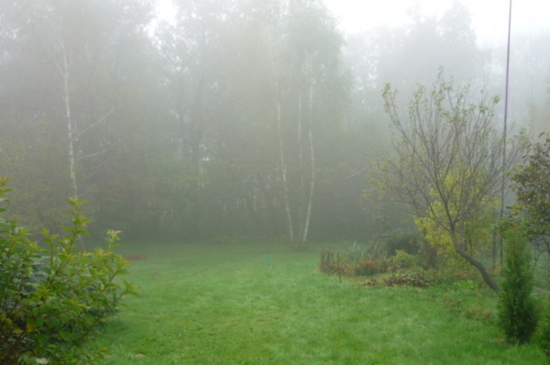Dzisiaj fajnie się wstawało, bo obudziłam się ze świadomością, że jutro będzie można się wyspać. Rano była tak gęsta mgła, że prawie nic nie było widać. Zerknęłam przez okno i nie mogłam uwierzyć w to, co zobaczyłam a raczej w to, czego nie zobaczyłam. Wyobraźcie sobie, że ktoś wczoraj wysprzątał wszystkie, moje liście. Mam taką sąsiadkę, która czasami robi mi różne, miłe niespodzianki i coś czuję, że to Jej zasługa. Pewnie grabiąc swoje liście zebrała też moje. Wiem jaka to wielka "robota", bo było ich strasznie dużo. Normalnie mnie zatkało. Muszę się jakoś odwdzięczyć. Chyba upiekę mój "idealny" sernik i zaniosę w podziekowaniu.