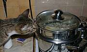 Dzisiaj rano w kuchni miałam wrażenie, ze kot jest wszędzie - zapach ryby i mięsa "rozdwajał go".