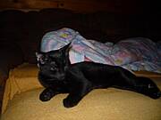 A przynajmniej próbował. Bo był stamtąd wyganiany - jakoś nie wyobrażałam sobie spać w pościeli, na której mościł się kot..hehehe..