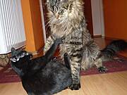 Czy podtuczysz Batmana - nie wiem.On ma szansę być z tych kotów, zmieszanych z dzikimi. Jak Maurycy. Mimo sporej wagi - na moje oko to już ponad 6 kg kota - jest nadal chudy, szczególnie jak się rozciągnie na dywanie lub w łóżku (lubi spać w pozycji rozciągniętej) - śmiejemy się, że prawie metr kota.