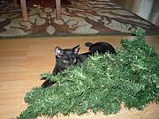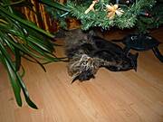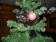 generalnie kot uznał, że jedyną ozdobą światecznego drzewka jest on sam - wielka futrzasta bombka z ogonem. Bombki nie powinny się tam znajdować, a co najwyżek leżeć na podłodze i służyć do turlania i noszenia w zębach. Bo kto widział zabawki wieszać...
