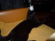 W nocy nie jest tak łatwo - wymaga użycia fizycznej siły i zrzucenia kota, na psik nawet nie reaguje...Zresztą w nocy - zauważyłam - włazi tam, gdzie go w dzień przegonimy...