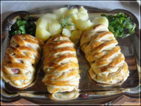 z farszem, kiedyś odgrzewałam upieczone ciasto francuskie w mikrofali i