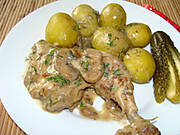 Ziemniaki z koperkiem, ozorek w sosie chrzanowym i surówka z kapusty, z własnych zapasów.