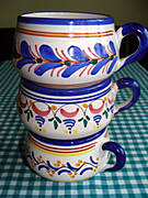 Masz rację ten kubek na zdjęciu też jest już wyszczerbiony. Usterkę zamaskowałem w programie graficznym. Mam niestety tylko trzy sztuki. Kupiłem je na hiszpańskiej wsi od "domowego" garncarza. Ich wadą jest to, że ucho ma metalowy szkielet. Kiedyś gdy chciałem podgrzać coś w kuchence mikrofalowej doznałem poparzenia drugiego stopnia. Ucho bardzo się nagrzało.