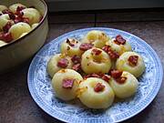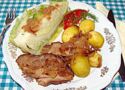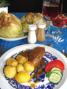 Ziemniaki, buraczki na zimno i roladki z karczu w środku z: boczkiem, kiełbaską, cebulą, papryką i skórką chleba (koniecznie).... mniam ale pachnie