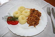 Gulasz z kluskimi śląskimi i do tego czerwona kapusta