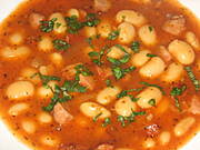 Pulpety w sosie pomidorowo-czosnkowym, ziemniaki, fasolka z bułeczką:)