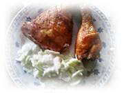 Ziemniaki, udko z kurczaka ,sałata lodowa z serem feta z sosem włoskim.
